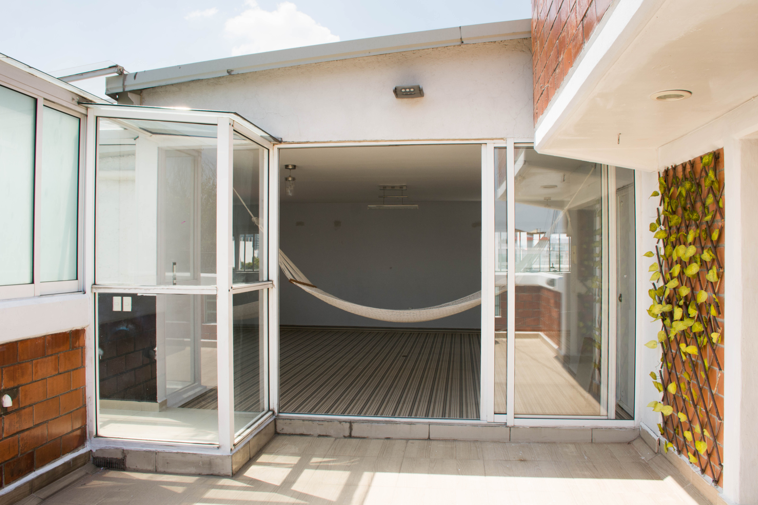 Nivel Superior (Sky-Loft): Casi 70m² de área privada que incluyen un salón techado con cancelería de piso a techo que se integra a una terraza con vistas panorámicas. Cuenta con medio baño independiente, ideal para oficina de alto nivel, estudio creativo o el salón social más privado de la colonia.
